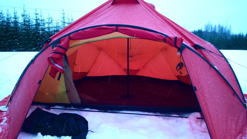 Helmikuun reissulle oli alunperin lähdössä kolme hiihtelijää, mutta kaksi pääsi starttaamaan. Eli vähän iso teltta kahdelle? No lisäksi kuitenkin kävi niin, että viimehetkillä pyöräytettiin reissun filosofia telttaöistä tupaöihin ja Bergansista luovuttiin. Hätävaraksi otimme mukaan MSR Twin Sisterin jossa taas ei paljoa ylimääräisiä kokkailla sisällä. Eli näin kevyen aasinsillan jälkeen, jätimme bensakeittimen autolle.